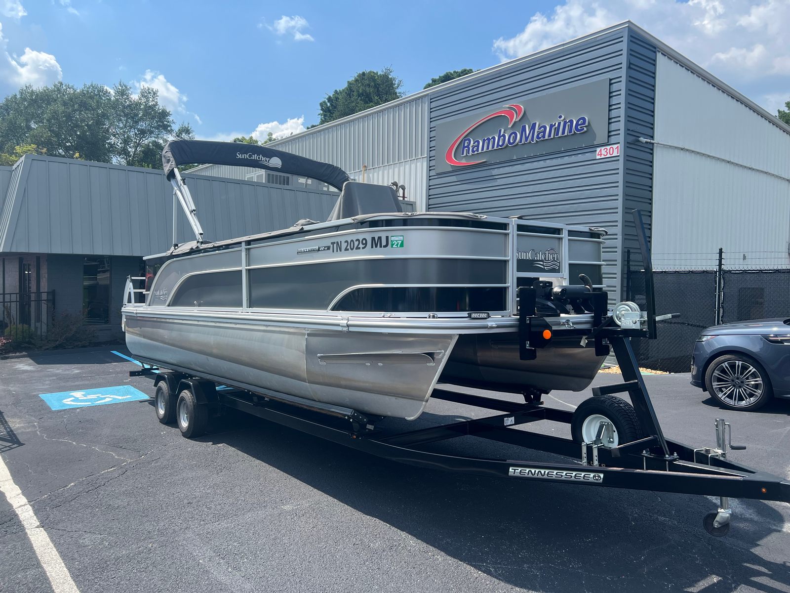 The 2022 Suncatcher 22 Select CC is a 22.5-foot pontoon boat that offers a spacious and inviting layout, making it ideal for both relaxing cruises and active water adventures. As a used pontoon boat for sale, it boasts only 35 engine hours, ensuring you get a vessel that is barely broken in and ready for many more seasons of enjoyment. The Suncatcher brand is renowned for its commitment to quality, durability, and innovative design, and the 22 Select CC model is a shining example of these values. With its sleek lines and modern styling, this pontoon boat is sure to turn heads at the marina and on the water.