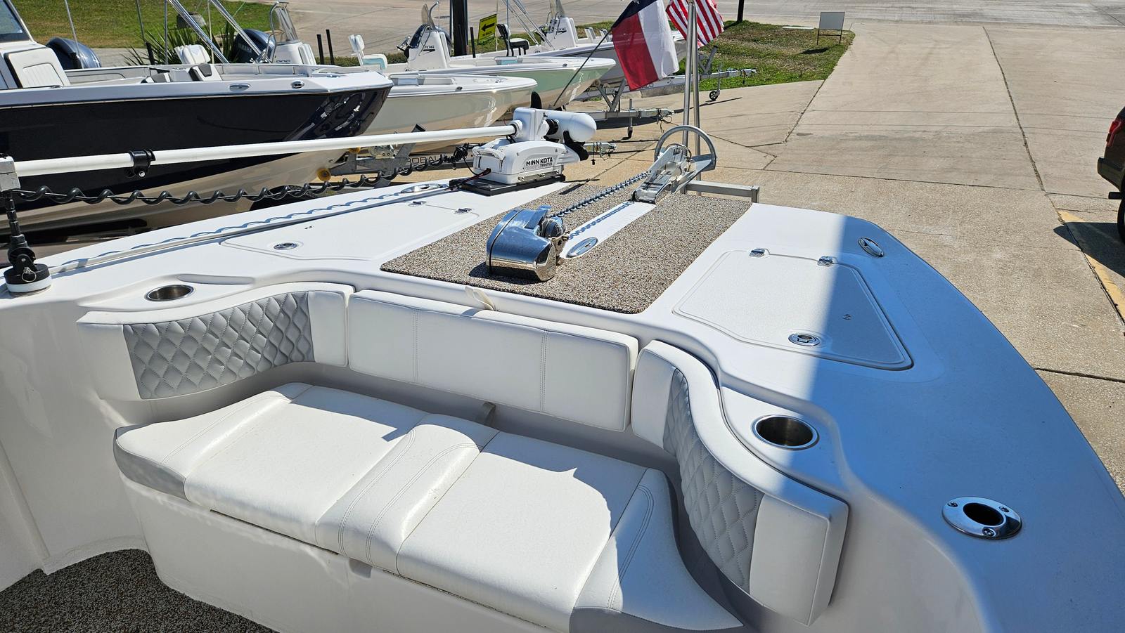 This Center Console boat truly shines in a variety of scenarios. For fishing enthusiasts, the combination of the Minn Kota I Pilot trolling motor, outriggers, and advanced Garmin electronics creates a formidable fishing platform capable of tackling everything from inshore species to offshore game fish. The spacious deck and stable ride make it easy to move around and fight fish, while the ample storage keeps your gear organized and accessible.Families and groups will appreciate the comfortable seating, smooth ride, and entertainment options provided by the Fusion stereo. The boat’s layout encourages socializing and relaxation, making it perfect for beach outings, island hopping, or sunset cruises. The windlass anchor allows for easy stops at your favorite swimming or snorkeling spots, while the T-Top ensures everyone stays cool and protected.For those who value adventure and exploration, the Twin Vee 260 Viva’s trailerability opens up a world of possibilities. Discover new lakes, rivers, and coastal destinations with the confidence that your boat is easy to transport and launch wherever your journey takes you.
