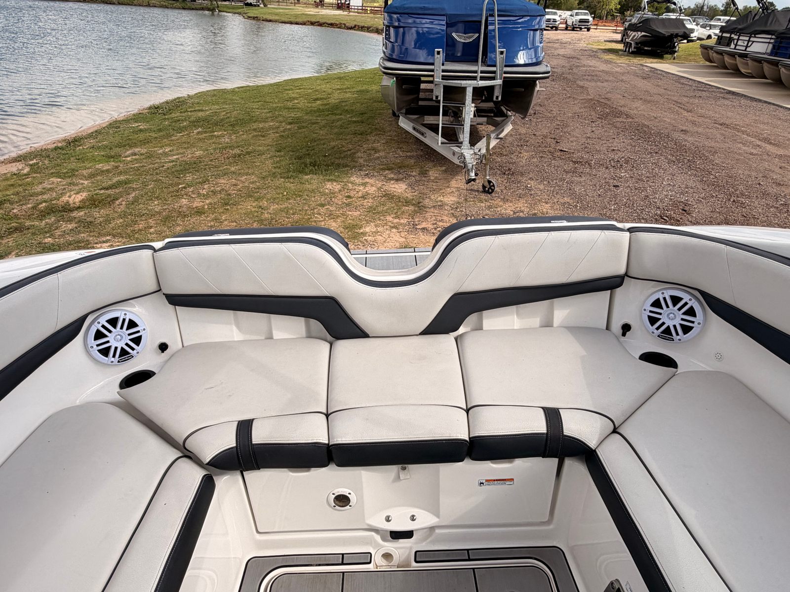 The 2015 Yamaha AR210 is packed with features designed to enhance your time on the water. Its 21-foot length provides ample space for family and friends, while the thoughtfully designed layout ensures everyone has a comfortable spot to relax. The AR210’s jet propulsion system not only delivers thrilling speed but also offers a shallow draft, making it perfect for exploring coves, beaches, and shallow waters where traditional propeller-driven boats can’t go.This jet boat for sale features a spacious swim platform, ideal for sunbathing, gearing up for water sports, or simply enjoying the view. The cockpit is designed for maximum comfort, with ergonomic seating and intuitive controls that put everything you need within easy reach. The AR210’s stylish design is complemented by durable materials and quality craftsmanship, ensuring your investment stands the test of time.